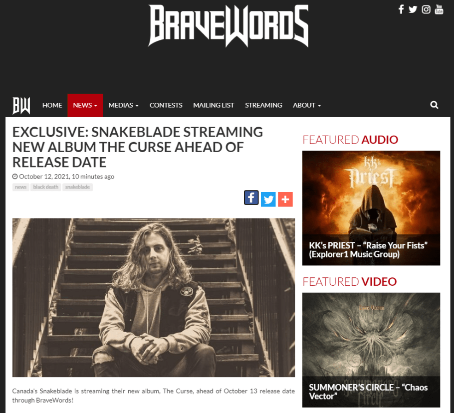 “I am compelled to say that SNAKEBLADE most definitely delivered an utmost maddening, but enjoyably entertaining discovery that made me replay this …pretty much all day long. “The Kingdom” is an addicting spin that will blow brains & shatter windows with explosive clarity. Full of density, technical prowess & engaging captivation. This is an incredibly amazing debut album, and I will most look forward to their upcoming projects. And for a singular writing attempt, bravo! I couldn’t help but score this as a masterful piece of other-worldly malevolence which most certainly deserves a slot in your collection for sure. Check it out!” – Metal Temple