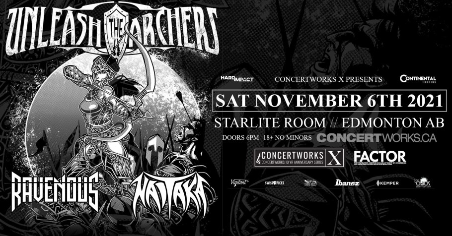 “We are excited to join our friends UNLEASH THE ARCHERS in celebration of CONCERTWORKS’ 10 year anniversary. Not only are we great supporters of STARLITE ROOM (one of the best venues in Canada), we are also happy to see yet another venue and booking agency survive the havoc wreaked upon our industry by the Covid pandemic – may this be the beginning of a prosperous time for bands, venues, staff, and crew all alike!”