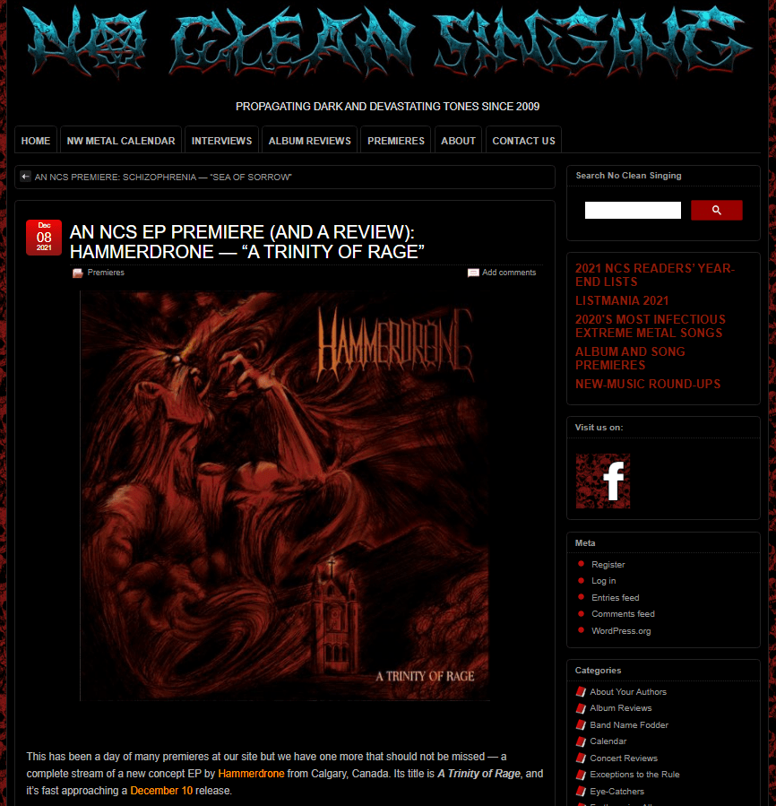“A Trinity Of Rage” will be released on December 10, 2021 and will be available officially along with the short story “Eversor” with download at Hammerdrone.bandcamp.com