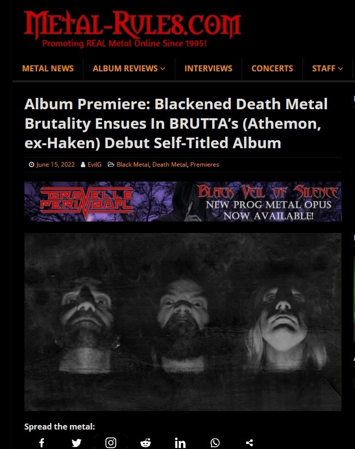 Blackened Death Metal Brutality Ensues In BRUTTA’s (Athemon, ex-Haken) Debut Self-Titled Album Streaming Now!