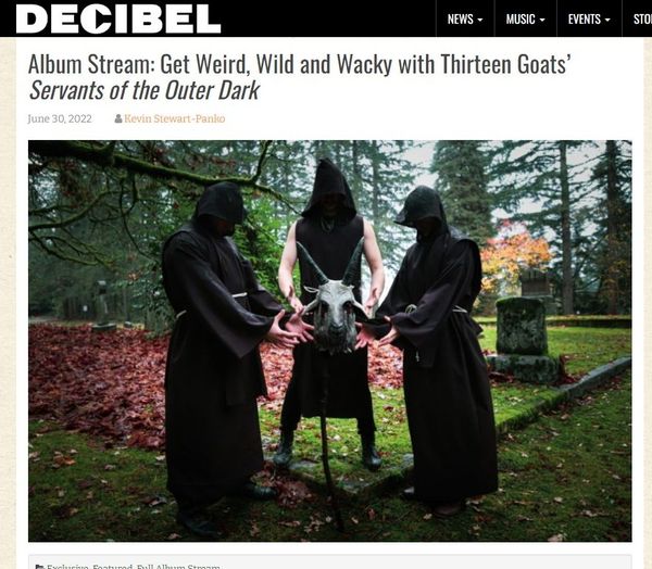 Listen to it in full at – https://www.decibelmagazine.com/2022/06/30/album-stream-get-weird-wild-and-wacky-with-thirteen-goats-servants-of-the-outer-dark/