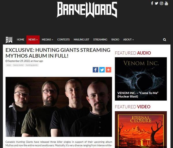 “A glorious adventure is about to begin, starting right here today! Heavy metallers Hunting Giants are debuting their brand new music video for “Rituals,” the first single from their upcoming album Mythos. The song indicates the zeal and the ambition that the band is bringing towards this new record, due for release on September 30th. The “Rituals” video matches the flat-out intensity of the song, one that discusses necromancy and the harshness of hatred and shame.” – V13