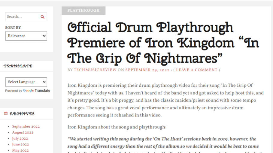 Witness The Thunder Behind IRON KINGDOM’s “In The Grip of Nightmares” With Drum Playthrough