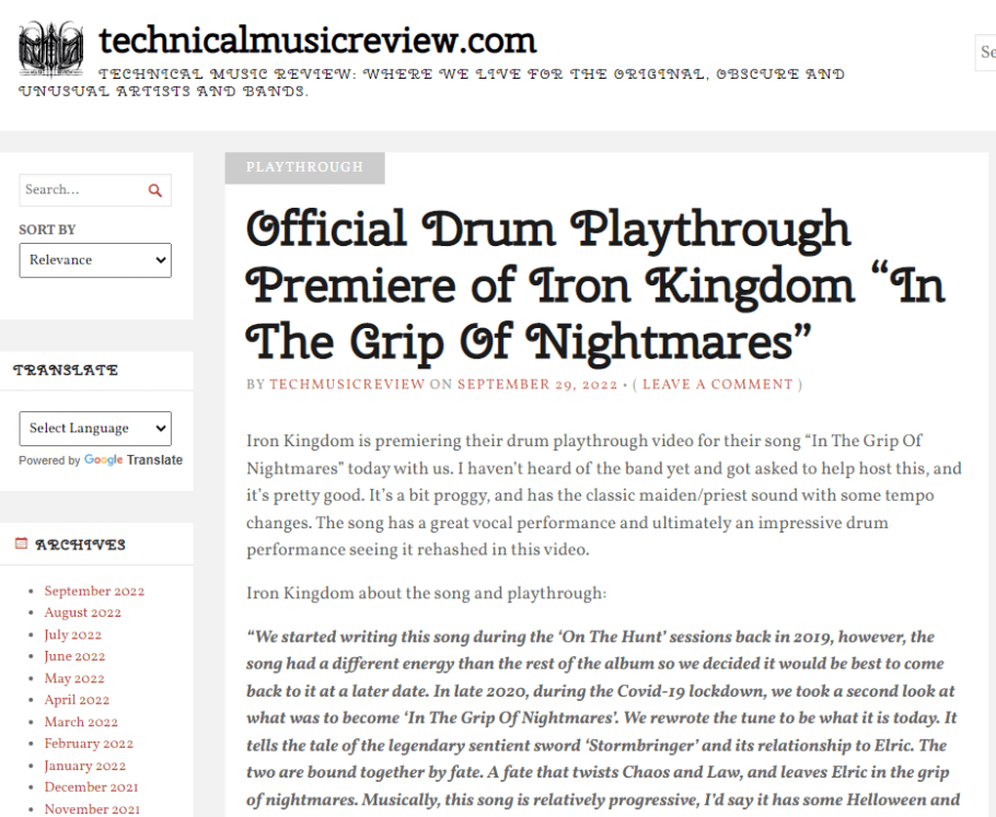 The drum playthrough for “In The Grip Of Nightmares” can be seen and heard via its premiere on TechnicalMusicReview HERE.