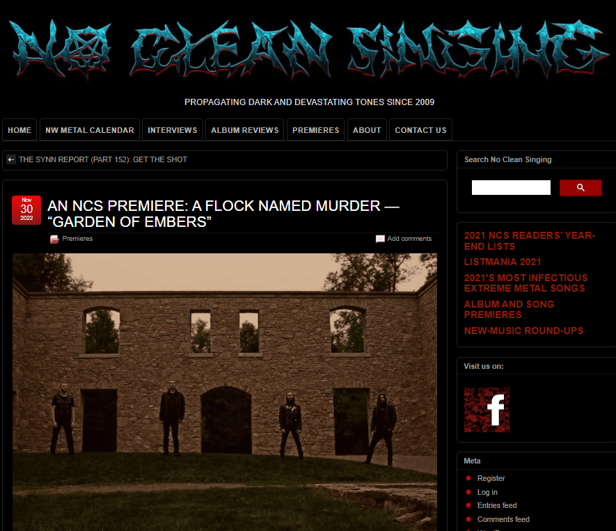 “Nor is this a gimmick band; there’s plenty else to draw you to An Appointed Time. There are down-right groove metal influenced sections on that first track, which make us think of Gojira of all things. Elsewhere, the blackened moniker takes over, creating blistering, acidic tracks that double down on the already present grandiosity with tremolo-fast riffs and blast-beats. But what will echo through your ears as the album ends is that very specific, very hard to create feeling of classic metal; everything on display here just blends into this feeling that you only get when listening to really well made and passionate metal. Can that be a genre? It is now and A Flock Named Murder pull it off to a fascinating degree.” – HEAVY BLOG IS HEAVY