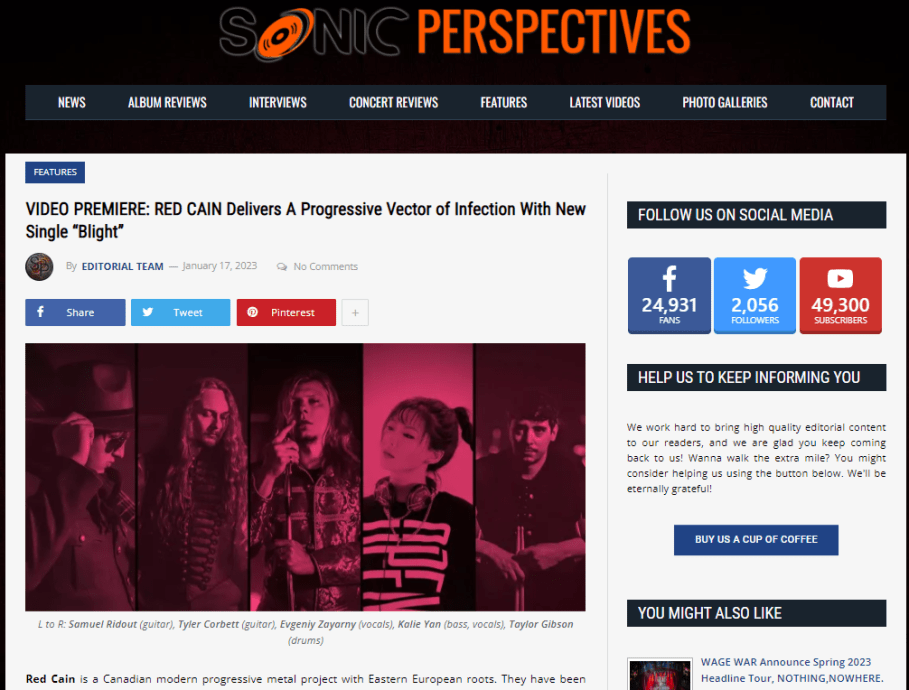 Calgary, Canada’s fantasy prog power metal Red Cain is kicking off the beginning of 2023 with their next The Wheel of Time (novel/TV series) inspired single entitled “Blight” that continues the storyline from their previous single “The Fisher King“ released this past November.