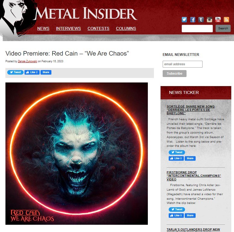 Canada’s RED CAIN Unveils New Video “We Are Chaos” Off New Album “NÄE’BLISS” Out April 2023