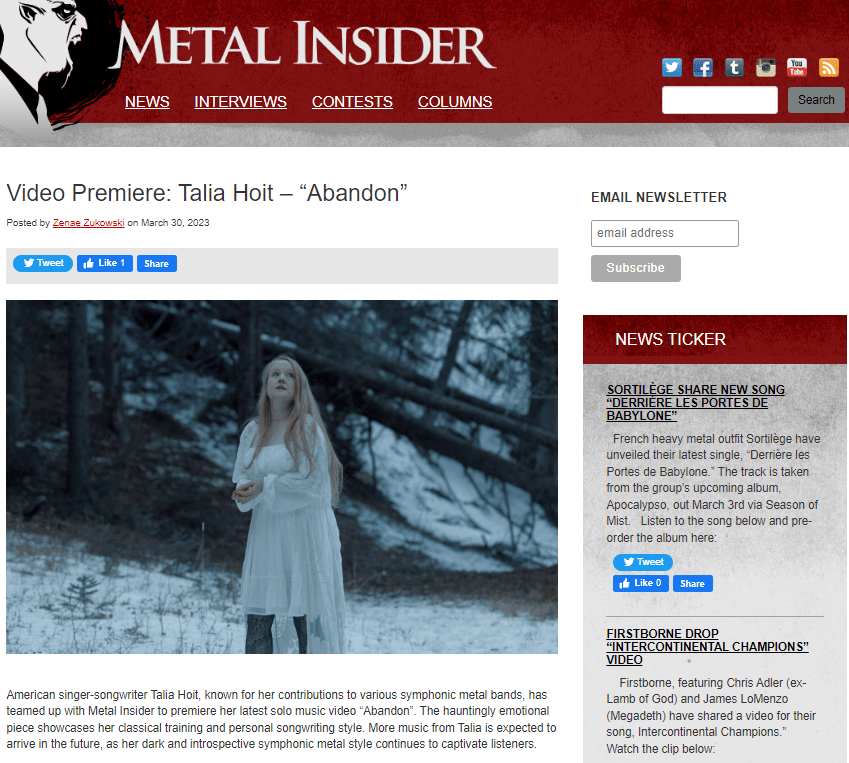 Talia Hoit is an American singer-songwriter from Colorado. She was classically trained at a young age and now she writes songs and various symphonic metal compositions. She has contributed to bands for the last two decades and also has a collection of solo works. Alongside a talented group of producers and musicians, she is bringing more of her most personal and intimate solo songs to life. Her latest piece is “Abandon”, in which the listener can immerse themselves in the haunting emotion. She shares her excitement for the video release: