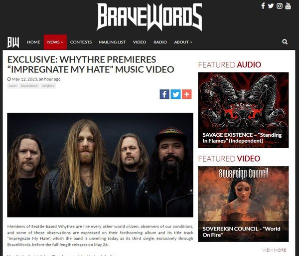 Watch and listen to “Impregnate My Hate” via its premiere on Bravewords HERE.