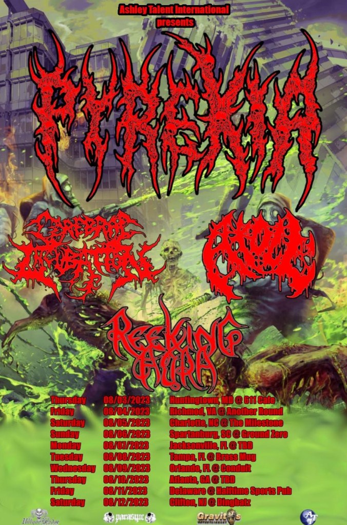 Tour Dates – Pyrexia w/ Cerebral Incubation (Unique Leader), Atoll (Unique Leader), Reeking Aura (Parasitic Records)