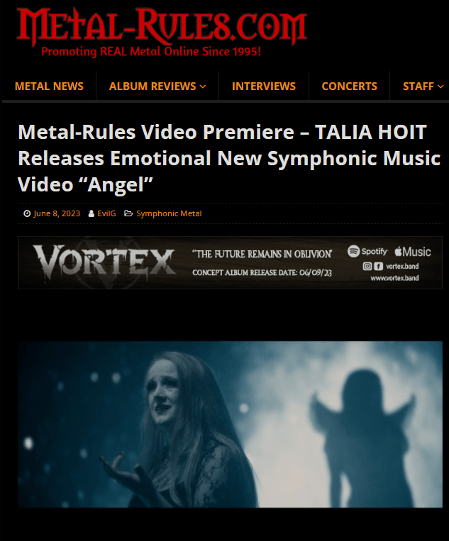 Talia Hoit is an American singer-songwriter from Colorado. She was classically trained at a young age and now she writes songs and various symphonic metal compositions. She has contributed to bands for the last two decades and also has a collection of solo works. Collaborating with a talented group of producers and musicians, the songstress is sharing her latest music video for her single “Angel”.