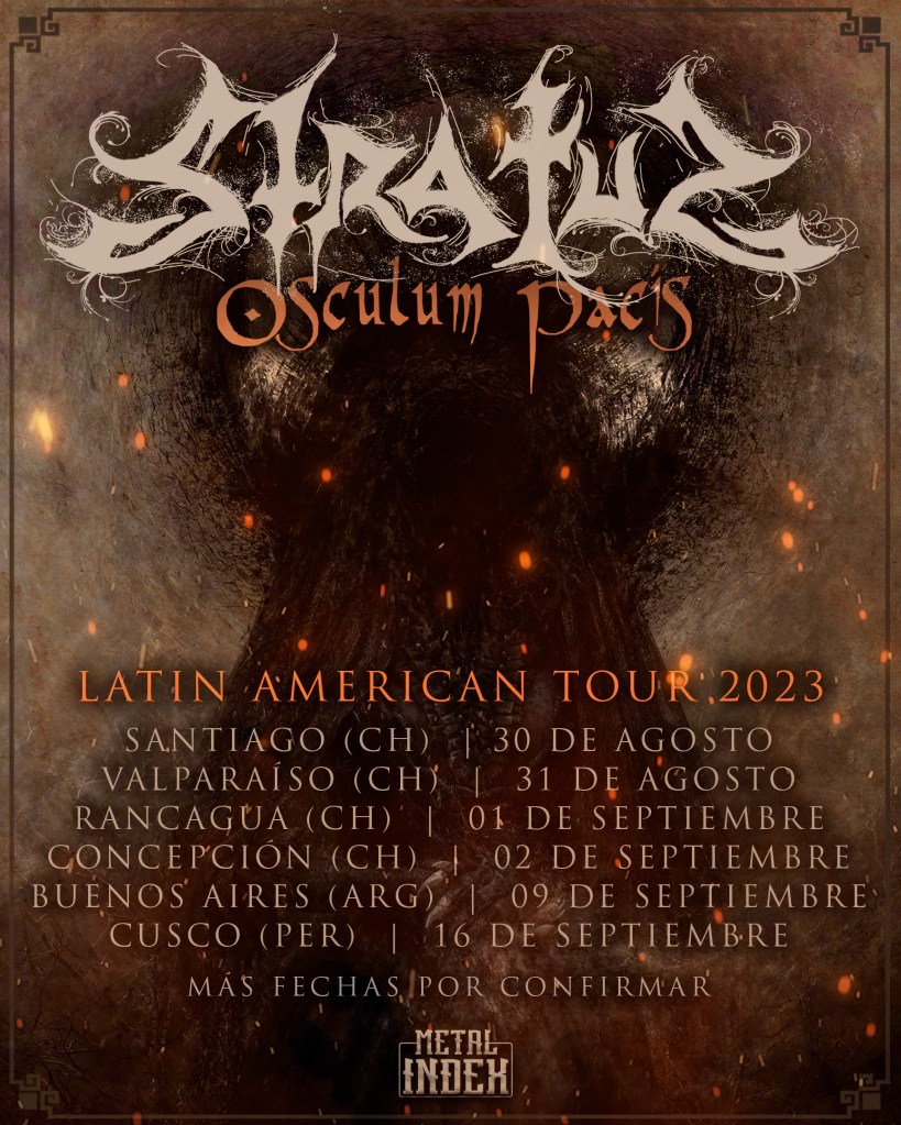 Venezuelan atmospheric death/doom Stratuz is adventuring across South America this August and September for tour dates to promote their latest album “Osculum Pacis” released in April 2022. The band will be kicking off the tour in Santiago, Chile on August 30th and continue across the country towards Argentina and wrap up in Cusco, Peru on September 16th. More shows will be added and announced at a later date (current dates listed below).