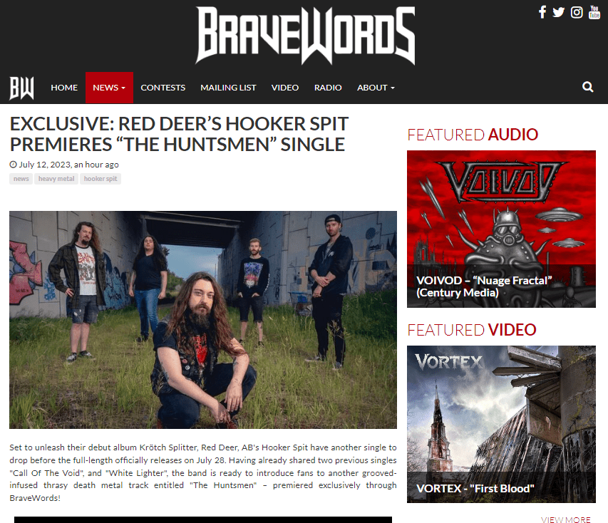 Set to unleash their debut album “Krötch Splitter”, Red Deer, AB’s Hooker Spit have another single to drop before the full-length officially releases on July 28th. Having already shared two previous singles “Call of The Void”, and “White Lighter”, the band is ready to introduce fans to another grooved-infused thrasy death metal track entitled “The Huntsmen”. The band explains it further.