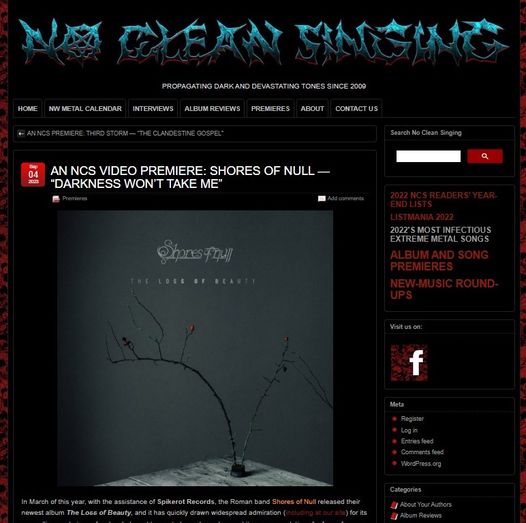 “Once again, Shores of Null continue to impress with yet another slab of high-quality doom/death that seems the quintet on an upwards trajectory. Their “Alice in Chains gone doom” recipe needs no repairing, thank you kindly, and while they’ve been around for nearly a decade, it’s still exciting to see where they go from here, because it still feels like The Loss of Beauty is hinting at even greater things to come. Add this to your overcast morning breakfast coffee moments, or your sunny afternoon chillout sessions.” – Angry Metal Guy