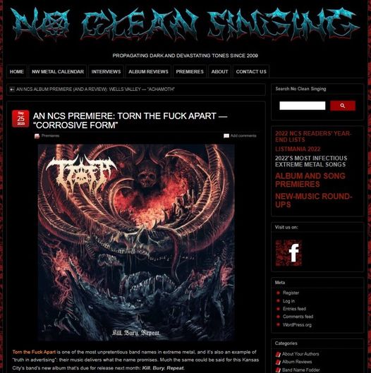 TORN THE FUCK APART Unleashes The Homicidal Death Metal Track “Corrosive Form”