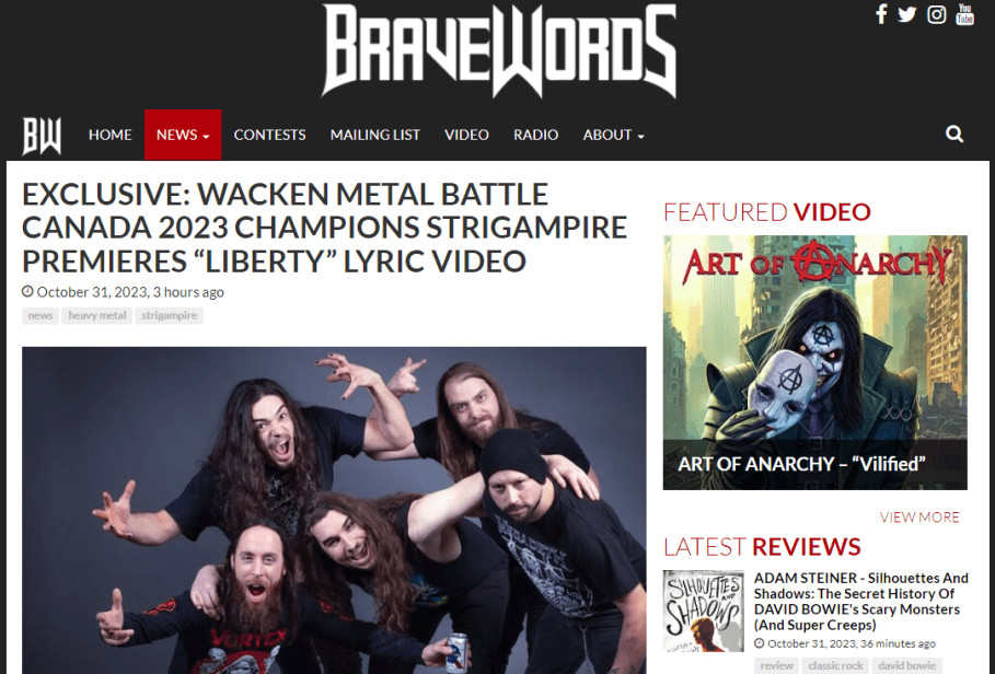 “A music group from Trois-Rivières, Strigampire, will participate in the most important death metal festival, Wacken Open Air, this summer in Germany.” CBC Radio Canada