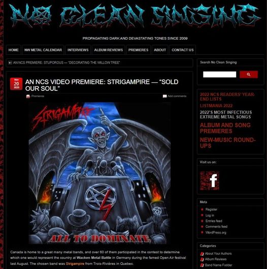 “A music group from Trois-Rivières, Strigampire, will participate in the most important death metal festival, Wacken Open Air, this summer in Germany.” CBC Radio Canada
