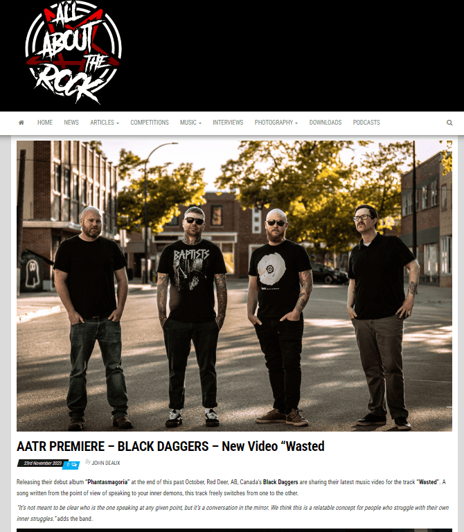 Releasing their debut album “Phantasmagoria” at the end of this past October, Red Deer, AB, Canada’s Black Daggers are sharing their latest music video for the track “Wasted”. A song written from the point of view of speaking to your inner demons, this track freely switches from one to the other.
