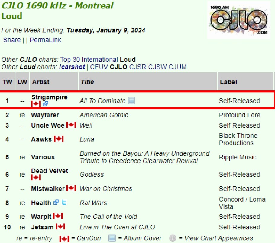 #3 Strigampire – Top 30 – CJLO – 1690AM – Montreal, QC