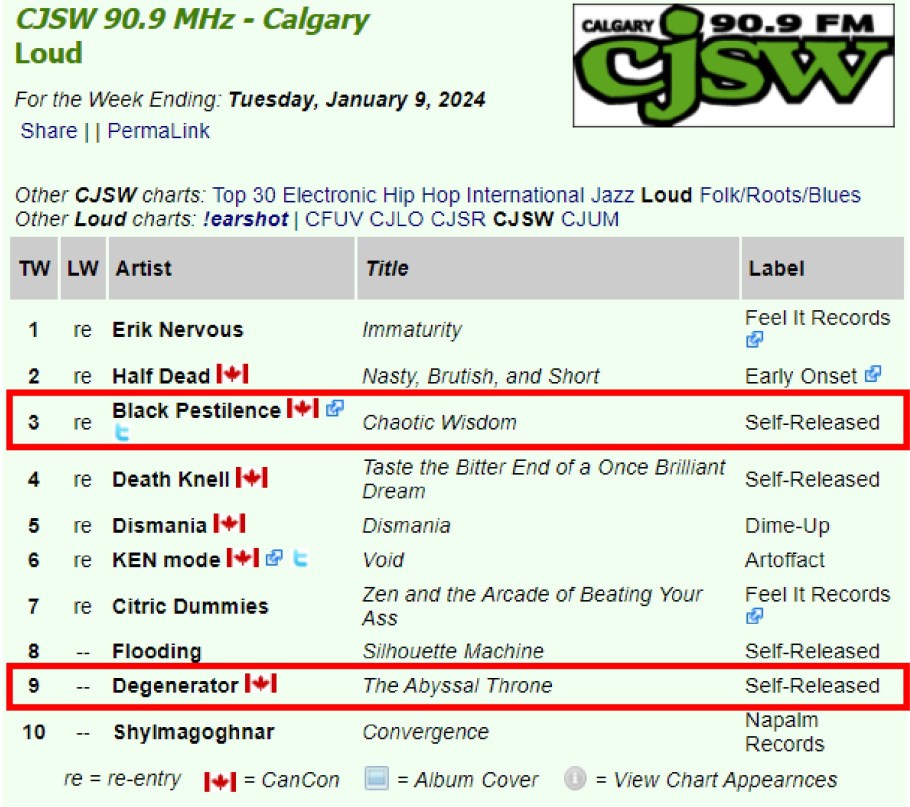 #3 Black Pestilence, #9 #DEGENERATOR – Loud – CJSW Radio 90.9 FM – Calgary, AB
