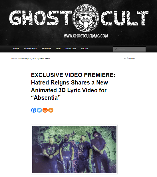 To give a visual admiration of this track’s relentless pillaging, Hatred Reigns has put together a 3D animated lyric video that can be seen and heard via its premiere on Ghost Cult Magazine HERE.
