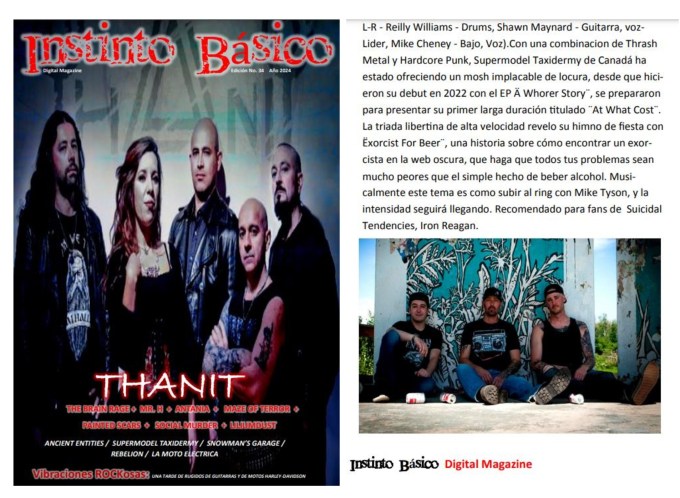 Supermodel Taxidermy, the dynamic force in thrash metal and hardcore punk, from Fort McMurray, Canada, is set to blow minds with their latest album “At What Cost”, which promises an exhilarating fusion of intense guitar hooks, heavy drums, catchy bass lines, and thought-provoking lyrics that will entice metal enthusiasts around the globe. They share their thoughts on the upcoming album: