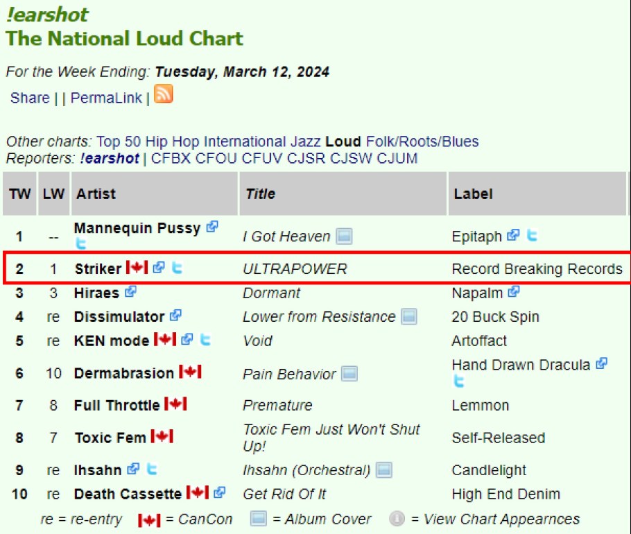 #2 Striker – !earshot – The National Loud Chart