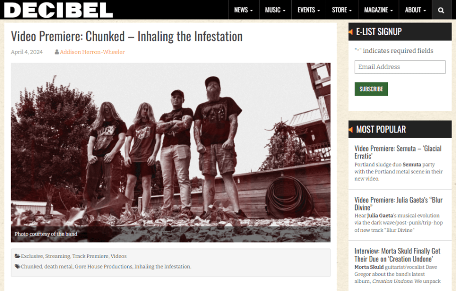 Gritty Primitive Death Metal Takes A Gory Turn In CHUNKED’s “Inhaling The Infestation” Lyric Video