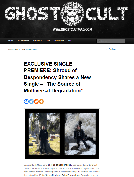Shroud of Despondency is an enigmatic force in the cosmic black metal scene, hailing from Michigan, USA, are announcing the release of their latest single “The Source of Multiversal Degradation”, which comes from the upcoming split EP with black metal stalwarts LanzerRath which is being released on May 10, 2024. Founder and multi instrumentalist Rory Heikkila comments on the track: