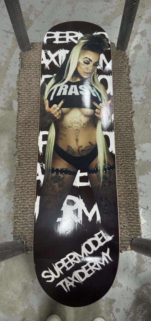 Order your skateboard deck at https://supermodeltaxidermy.bandcamp.com/merch/skateboard