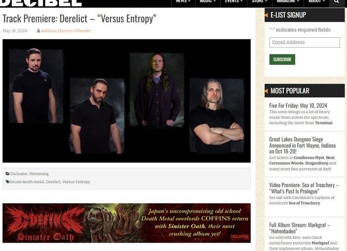 Canada’s Tech Death Pioneers DERELICT Debut Title Track From “Versus Entropy” And Reveal Album Art