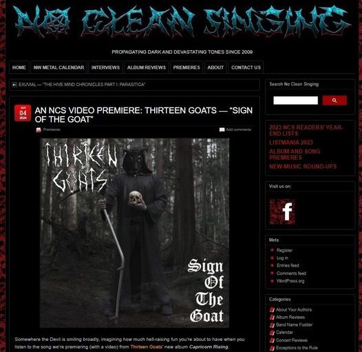 Watch and listen to the video for “Sign of the Goat” via NoCleanSinging HERE.