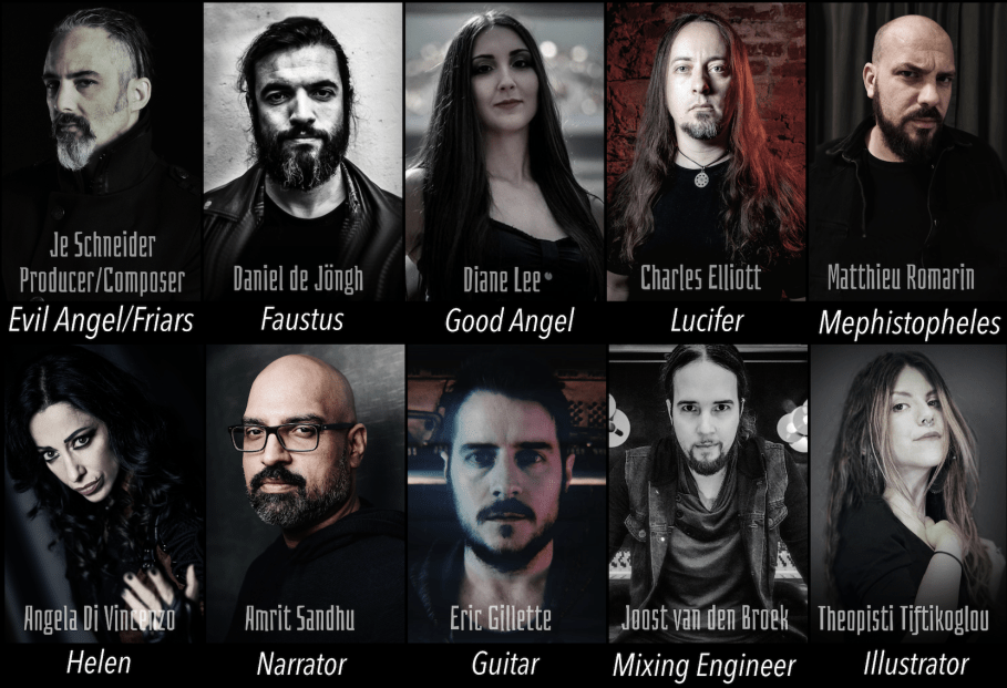 This groundbreaking album is a metal opera that draws inspiration from the epic 16th-century saga, ‘Doctor Faustus’ by Christopher Marlowe. Led by the visionary Je Schneider, the compositions weave an engaging narrative, accompanied by a powerful vocal delivery from a stellar cast. Daniël de Jongh takes on the role of the lead vocalist, guiding listeners through an exhilarating journey. From symphonic heights to brutal depths, the entire album is masterfully mixed and mastered by the renowned Joost van den Broek (Epica, Ayreon, Powerwolf). “Faustus The Musical” boasts an impressive lineup of talented contributors: