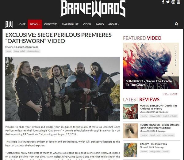 Prepare to raise your swords and pledge your allegiance to the realm of metal as Denver’s Siege Perilous unleashes their latest single “Oathsworn” off their upcoming EP “Creation’s Call”, coming out August 23, 2024. The single is a thunderous anthem of loyalty and brotherhood, which will transport listeners to the heart of battle as the band explains: