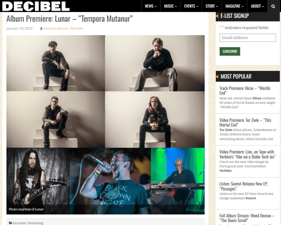 Sacramento, USA’s progressive metal pioneers LUNAR are set to release their most ambitious project to date, “Tempora Mutantur” on January 31, 2025. A meticulously crafted concept album that explores the intricate passages of time, personal transformation, and emotional landscapes, the record represents a milestone in the band’s continuing musical evolution. They comment on the release: