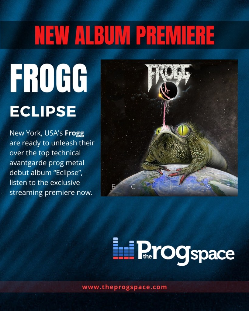 New York, USA’s FROGG are ready to descend an “Eclipse” of technical modern metal with their debut album out on March 7th, 2025. A long time in waiting, this first full-length features ten tracks of heavy, raw, progressive, death and avant-garde thinking metal. The record was co-produced by Frogg guitarist/vocalist Sky Moon Clark and Jamie King (Between the Buried and Me, The Contortionist, Scale the Summit). Fans who have been following Frogg since their conception will find exactly what that they signed up for along with lots of fun surprises. The band doesn’t operate in one genre all the time and “Eclipse” is set to marvel.