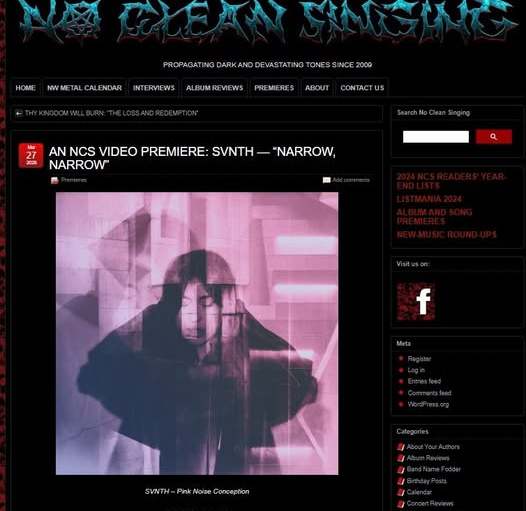 Recommended for fans of Deafheaven, Alcest, and Agalloch, “Pink Noise Youth” is due out on April 18, 2025, on Vinyl, CD, and Digital via These Hands Melt Records and is available for pre-order / pre-save at https://lnk.to/SVNTH