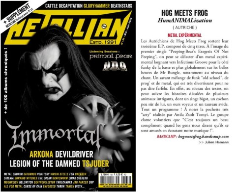 “There’s an element of uniqueness to how each of these songs are written, although you can’t deny the clear influence of say the Primus bass lines or Zappa-esc experimentation, yet it is within the niche, thematic storytelling that gives Hog Meets Frog a real musical identity. The way they can tell a story with humour yet allow you to consider the real and often times scary true circumstances behind where these stories originate is what gives this band their staple. Certainly one to look out for in the future, long live Sqeekquackmusic!” – Metal Epidemic