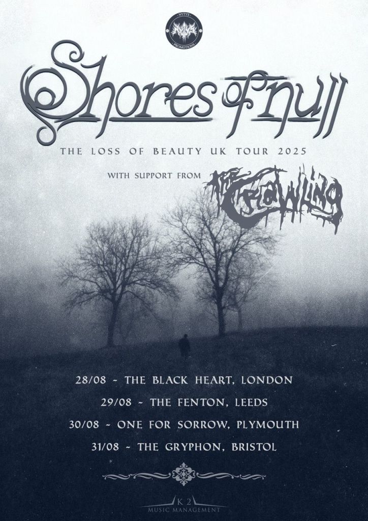 After playing extensively all over Europe in support of their acclaimed album “The Loss Of Beauty” and their recent live album, “Beauty Over Europe”, Italian melancholic dark metal outfit Shores Of Null is thrilled to announce a string of four UK performances. The tour includes a headlining appearance at Plymouth’s One For Sorrow Festival. Joining them on this UK leg will be Lisburn’s own The Crawling. (dates listed below)