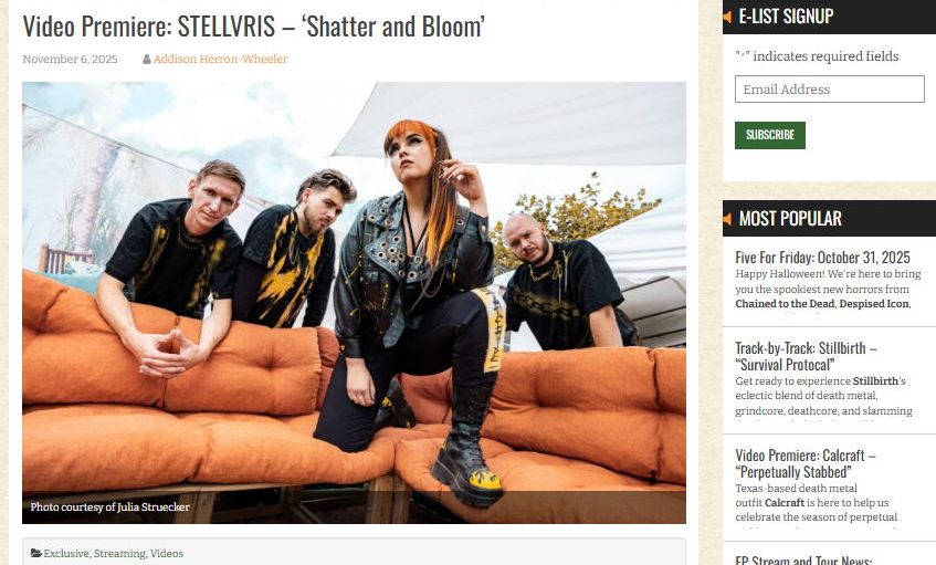 Czech modern metal upstarts STELLVRIS are set to unleash their highly anticipated new EP, “Shatter and Bloom,” on Friday, November 7th. Ahead of its official release, the band is premiering both the EP and a powerful new music video for the title track, a showcase of their signature blend of crushing heaviness, soaring melodies, and raw emotion, exclusively via Decibel Magazine HERE.