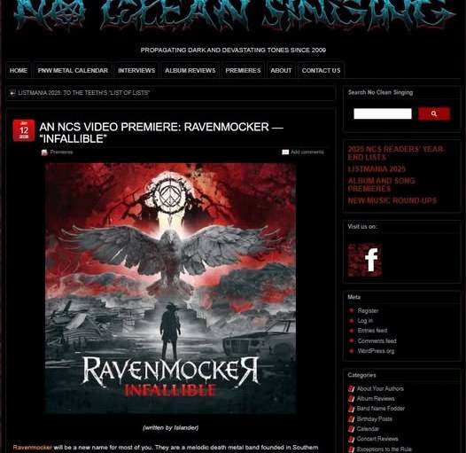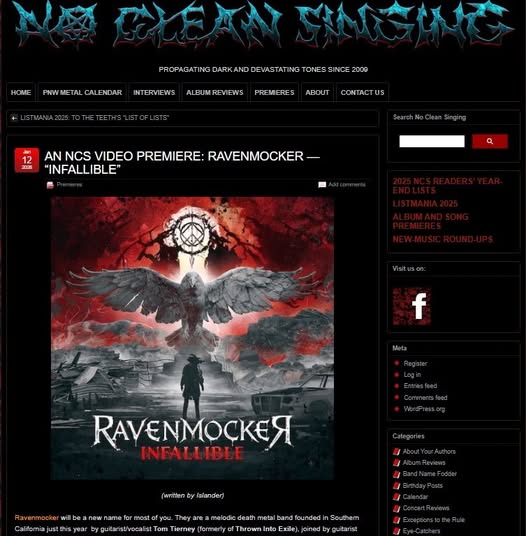Southern California’s newest force in melodic death metal, Ravenmocker, has released their debut single, “Infallible”, accompanied by a music video to mark the band’s official arrival and the first of several tracks set to drop throughout the year. Formed in 2025 by guitarist/vocalist Tom Tierney, the band emerges from a period of personal upheaval, creative rebirth, and a desire to carve out a culturally rooted identity inspired by Native American lore.