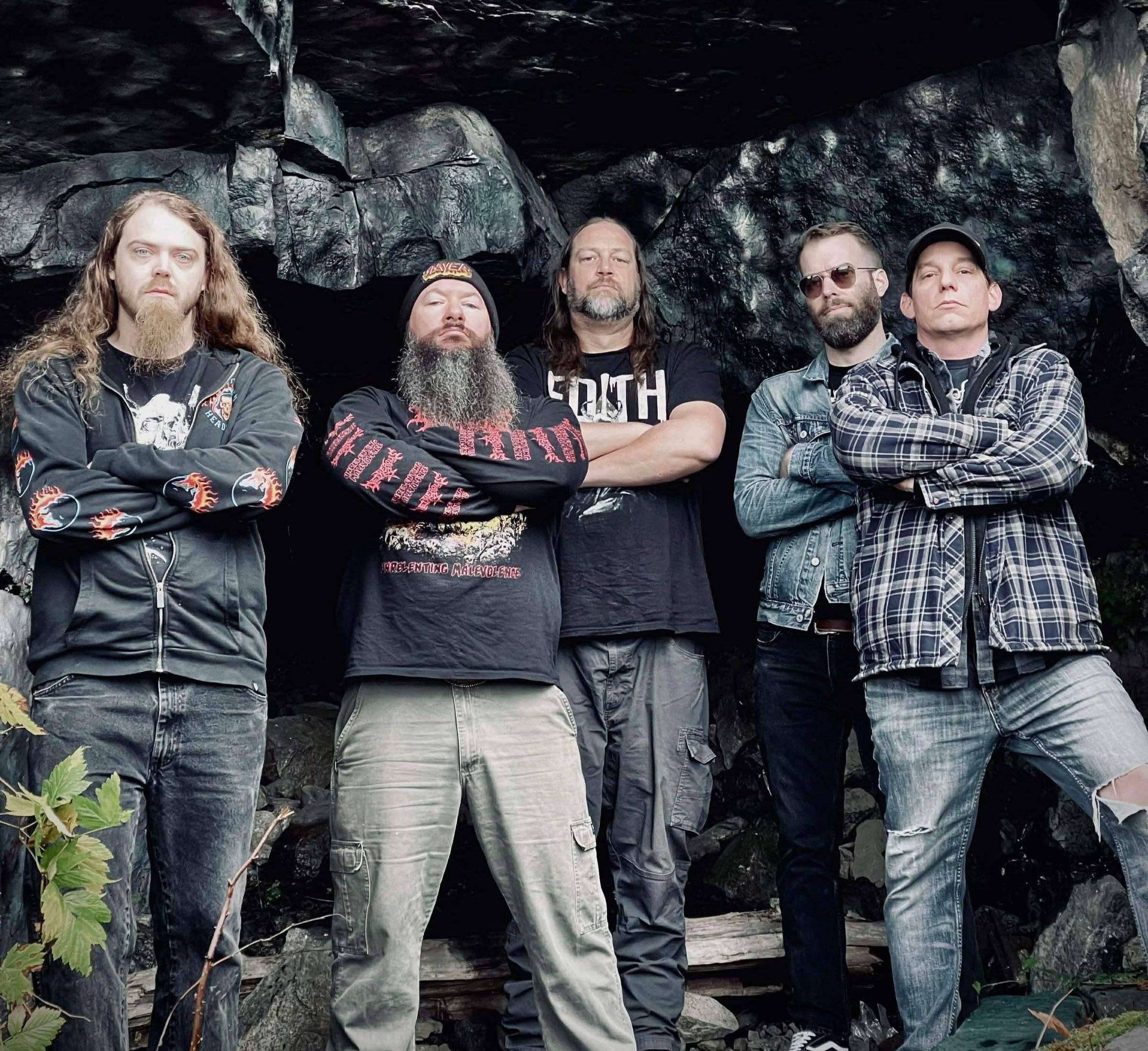 L-R – Justin Marcil – Bass, Justin Gordon – Guitar, Ken Rothe – Guitar, Aaron Graham – Drums, Tyler Parsons – Vocals