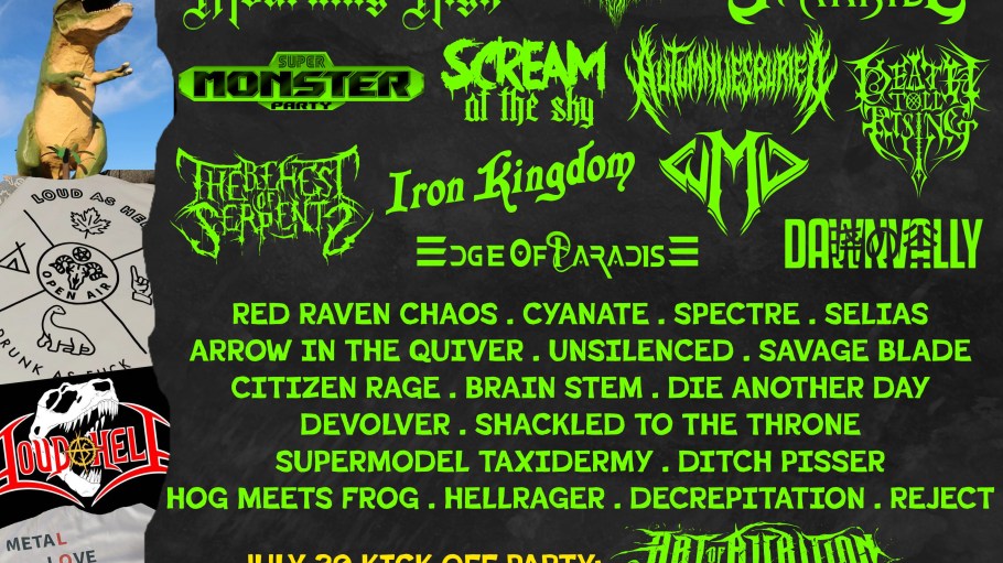 Renowned for unleashing one of Western Canada’s most punishing festival experiences, Loud As Hell Open Air Festival returns with another year of crushing performances, freak shows, burlesque acts, clinics, vendors, and, naturally, dinosaurs.