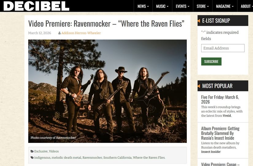 Southern California melodic death metal newcomers Ravenmocker have unleashed their second single, “Where The Raven Flies,” in 2026, following the strong reception of their debut track, “Infallible.” The new single continues building the band’s identity: soaring melody, cultural storytelling, and a modern take on the melodic death metal spirit once championed by acts like Children of Bodom, Insomnium, and Kalmah.