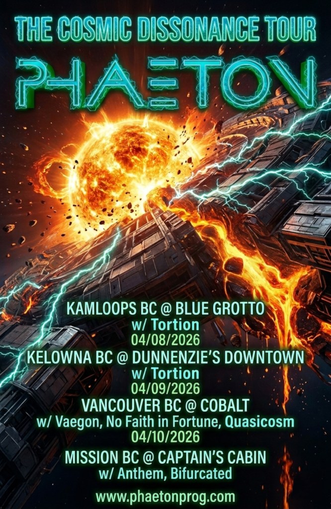 British Columbia’s all‑instrumental progressive metal force PHAETON is gearing up to hit the road for their 2026 Canadian West Coast “The Cosmic Dissonance Tour,” supporting their latest third full‑length album, “Neurogenesis,” released this past October 2025. The tour marks the band’s first extended run across the province of British Columbia since the release of their 2020 sophomore album “Between Two Worlds.” It promises a blistering showcase of their evolving, hyper‑melodic, and technically ferocious sound.