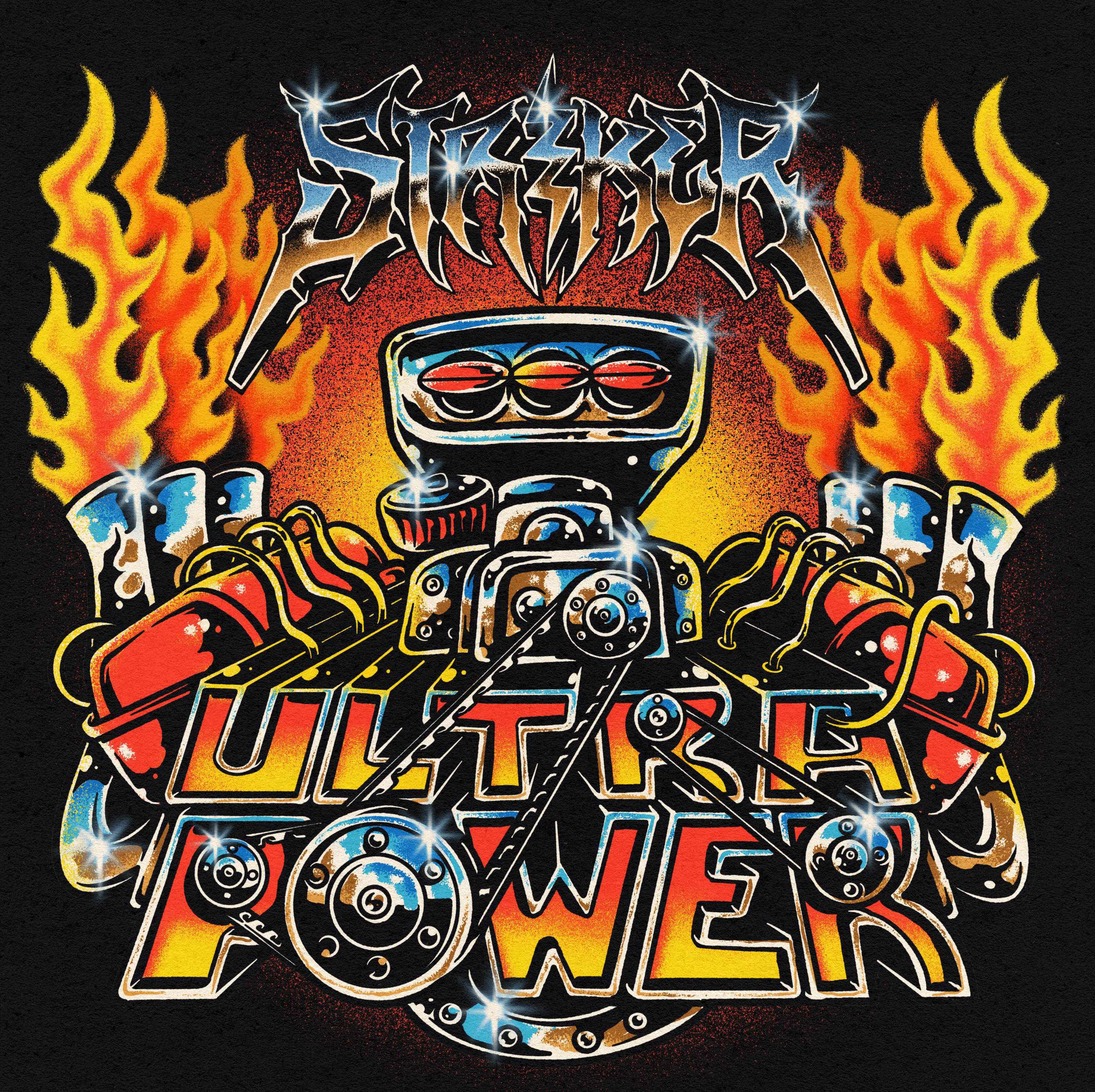 ULTRAPOWER is the amalgamation of 5 years of writing and exploring music. With influences from AOR to Speed Metal, Hardcore to Hair Metal, Steely Dan to Deathcore, you name it, it made its way into the album. In the end with the help of Josh Schroeder’s guiding hand, we melted it all together to present something uniquely Striker. Lyrically we’ve stuck to the Striker tradition of writing montage songs for movies that don’t exist, songs about our spiraling serfdom, and lyrics about the evils that lurk in the shadows.