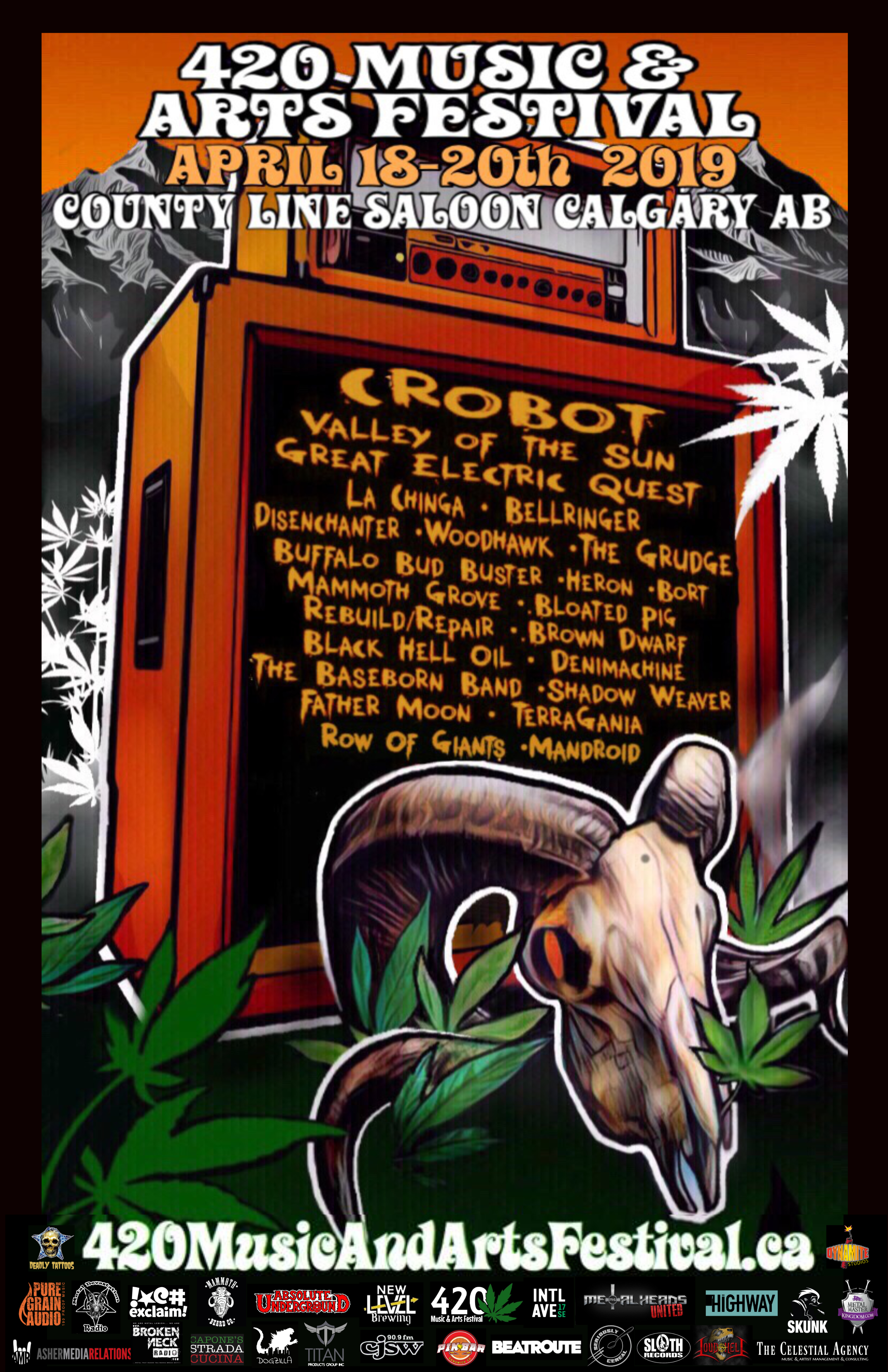 The main event will take place at the County Line Saloon (1825 50 St SE) April 18-20, 2019 and will include the musical stylings of Crobot, Valley of the Sun, Disenchanter, Mark Deutrom‘s Bellringer, The Grudge, Great Electric Quest and more! Expanding the genre selection even more than past years, there is something for every rock and metal lover from groovy rock, to hard rock blues, to party metal and sludgy psychedelic rock.