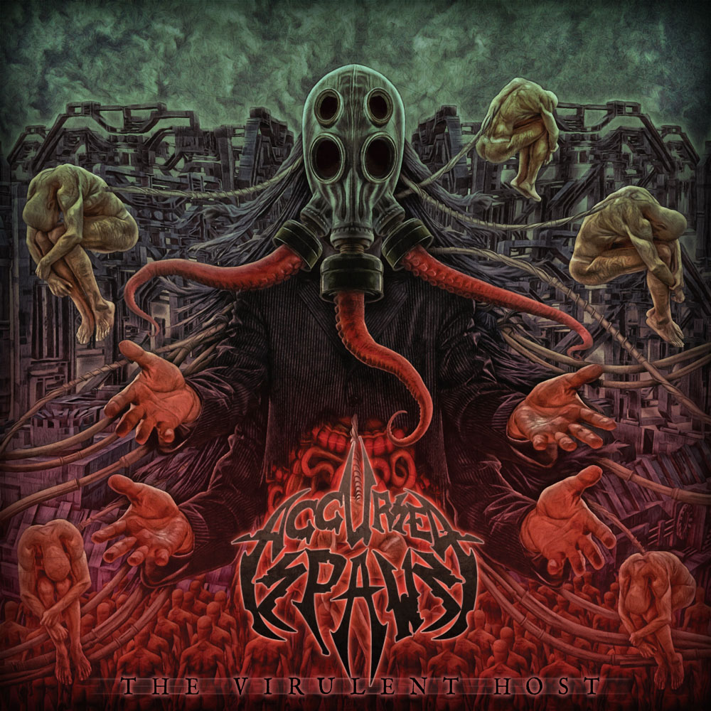 In addition to the album recording, Accursed Spawn recruited highly esteemed artist Remy Cooper of Headsplit Design (Origin, Beyond Creation, Psycroptic, Pig Destroyer, Whitechapel, Thy Art Is Murder, Cryptopsy, Suicide Silence, Arch Enemy) to create the rich stylized artwork for “The Virulent Host” – a piece that immediately draws attention to the eye. The artwork captures all of what the album is about, a raging narrative of war and corruption plus the dialogues within influenced from the political turmoil and evil corporations that have a stranglehold on our society.