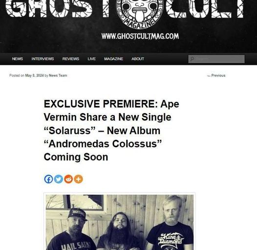 “Lovers of slow, massive riffs, rejoice! Ape Vermin is here for your daily dose of gnarly Sludge and Doom Metal music!” – Ghost Cult Magazine
