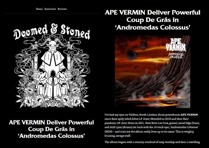 “Ape Vermin’s Andromedas Colossus is doom to the core. Though a lot for one sitting, it’ll sustain your attention during a long walk or drive. Fans of the genre will find much to relish, be it individual tracks or the whole, and it’s certainly one of the standout albums of the year so far.” – Doomed And Stoned